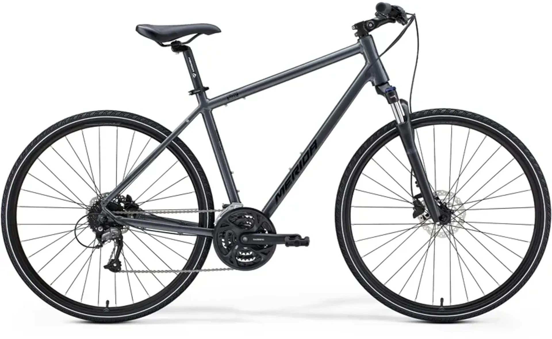 Merida base all disc brake models around the same lightweight aluminium frame with an urban look, the steep sloping top ube provides plenty of stand over height. The Crossway range can be equipped with mudguards, racks and kickstands for ultimate adaptability.